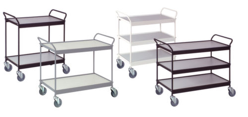 "description": "Tragl. 150kg, 3 Etage(n), Ladefl. LxB 785x500mm, RAL9010, Vollgummi-Bereifung",