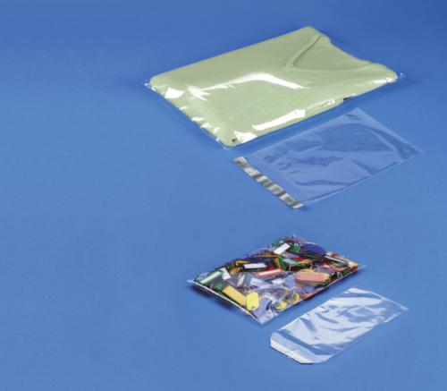 "longDescription": "<h2>Flachbeutel</h2><strong>einfach zu verschließen mit Haftklebestreifen</strong><br><ul><li><strong>Robust</strong> - aus Polypropylen</li><li><strong>Edles Erscheinungsbild</strong> - mit glasklarer Oberfläche</li><li>Verschließbar mit Haftklebung</li><li>Mit Belüftungsloch</li></ul><br><strong>Sie haben die Wahl:</strong><br><ul><li><strong>Immer passend</strong> - in verschiedenen Größen</li></ul>",
