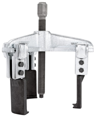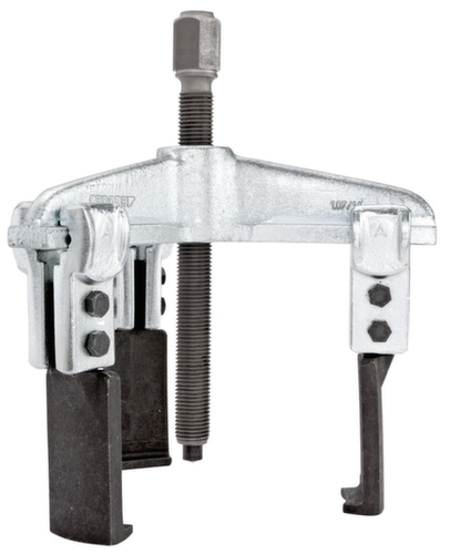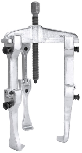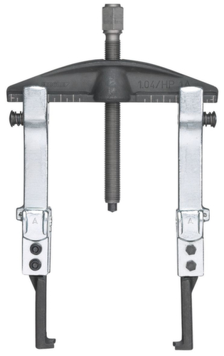 Universal-Abzieher HIGH POWER No. 1.04/HP1A-B, 2-armig, 130x100 mm|Traverse No. 107/1A03, 3-armig 180 mm|Abzughaken No. 106/A-100-B, Ganzstahl, Hakenbremse 100 mm|3x Verlängerung No. 106/A-100-VB mit Hakenbremse 100 mm|3x Abzughaken No. 106/A-100-S, schlank 100 mm|3x Abzughaken No. 106/S101-S, ohne Klemmstück|Spindel No. 1.1406200, SW 17 M14x1,5 200 mm