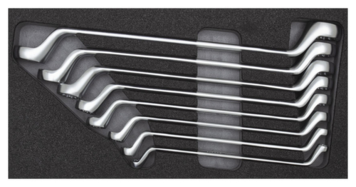 "longDescription": "Ausführung nach DIN 838, ISO 3318, ISO 1085, ISO 10104, 5° gekröpft, Mit dünnwandigen Ringen, Chrom-Vanadium-Stahl, Oberfläche matt-satiniert verchromt, Im Schaumstoffmodul<br>",