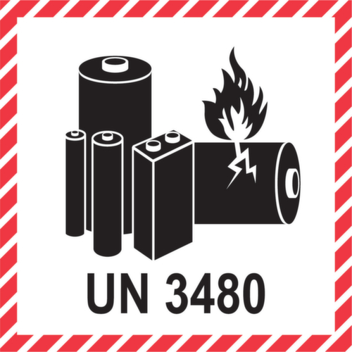 }Gefahrenetiketten aus Papier 100 x 100 mm: Lithium-Batterien