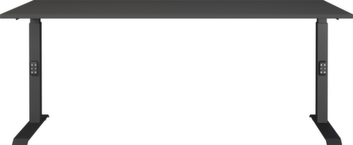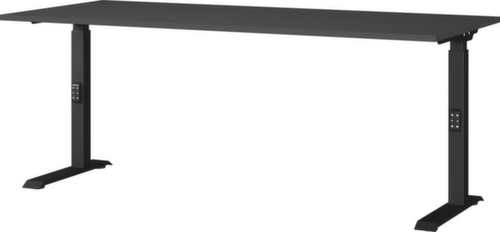 Platte aus Spanplatte mit pflegeleichter Melaminharzbeschichtung in Dekor graphit. Kante mit schlagfestem ABS-Umleimer, der vor unschönen Rissen und Ausbrechen schützt. C-Fußgestell aus Metall mit schlag- und kratzfester Pulverbeschichtung in schwarz. Höhenverstellung durch Mechanik. Gestell mit nivellierbaren Kunststoffgleitern, mit denen sich Bodenunebenheiten optimal ausbessern lassen.