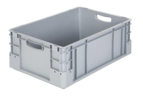Maßlich auf die Europalette abgestimmt. Aus bruchsicherem Polypropylen in grau. Wände geschlossen, Boden geschlossen. Boden mit Verstärkung durch Verstärkungsrippen. Einfacher Transport durch Tragegriffe. Mit Etikettenhalter zur individuellen und klaren Beschriftung. Einfach zu stapeln mit Stapelrand sicher Mehrfach stapelbar. Lebensmittelgeeignet. Für Rollenbahnen geeignet. Temperaturbeständig -40 °C bis +90 °C. Geeignet für verschiedene Stoffe, bitte anfragen.