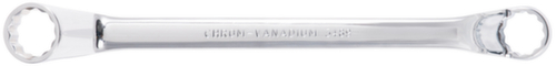 "longDescription": "Doppelringschlüssel<br>- DIN 838, ISO 3318, ISO 1085, ISO 10104<br>- 70° beidseitig abgewinkelt<br>- Hochglanz verchromt <br>- Chrome Vanadium<br>- 46 x 50 mm<br><br>",