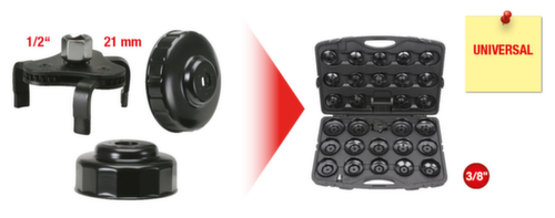 "longDescription": "<ul><li class=\"liste\">ideal geeignet zum Ein- und Ausbau des schwer zugänglichen Ölfilterdeckels beim Wechsel des Ölfiltereinsatzes oder des Ölfilters</li><li class=\"liste\">zum drehmomentgenauen Anziehen nach Herstellerangabe</li><li class=\"liste\">geeignet für Links- und Rechtsbetrieb</li><li class=\"liste\">Innenvierkantantrieb nach DIN 3120 - ISO 1174</li><li class=\"liste\">Außensechskantantrieb 21,0 mm</li><li class=\"liste\">inklusive 1/2\" Ölfilterspinne</li><li class=\"liste\">für Handbetätigung</li><li class=\"liste\">lackierte Oberfläche</li><li class=\"liste\">in stabilem Kunststoffkoffer</li></ul><br><br><strong>Enthaltene Teile:</strong><br>- 1 x Ölfilter-Spannschlüssel Ø63-102mm<br>- 1 x 3/8\" Ölfilterschlüssel, 65-14<br>- 1 x 3/8\" Ölfilterschlüssel, 68-14<br>- 1 x 3/8\" Ölfilterschlüssel, 73-14<br>- 1 x 3/8\" Ölfilterschlüssel, 74/76-15<br>- 1 x 3/8\" Ölfilterschlüssel, 76-14<br>- 1 x 3/8\" Ölfilterschlüssel, 80-15<br>- 1 x 3/8\" Ölfilterschlüssel, 93-15<br>- 1 x 3/8\" Ölfilterschlüssel, 93-36<br>- 1 x 3/8\" Ölfilterschlüssel, 65/67-14<br>- 1 x 3/8\" Ölfilterschlüssel, 80/82-15<br>- 1 x 3/8\" Ölfilterschlüssel, 90-15<br>- 1 x 3/8\" Ölfilterschlüssel, 75/77-15<br>- 1 x 3/8\" Ölfilterschlüssel, 76-30<br>- 1 x 3/8\" Ölfilterschlüssel, 100-15<br>- 1 x 3/8\" Ölfilterschlüssel, 66-6<br>- 1 x 3/8\" Ölfilterschlüssel, 74-15<br>- 1 x 3/8\" Ölfilterschlüssel, 76-12<br>- 1 x 3/8\" Ölfilterschlüssel, 76-8<br>- 1 x Adapter 1/2\"F x 3/8\"M<br>- 1 x 3/8\" Ölfilterschlüssel, 78-15<br>- 1 x 3/8\" Ölfilterschlüssel, 86-18<br>- 1 x 3/8\" Ölfilterschlüssel, 86-16<br>- 1 x 3/8\" Ölfilterschlüssel, 92-10<br>- 1 x 3/8\" Ölfilterschlüssel, 93-45<br>- 1 x 3/8\" Ölfilterschlüssel, 95-15<br>- 1 x 3/8\" Ölfilterschlüssel, 96-18<br>- 1 x 3/8\" Ölfilterschlüssel, 106-15<br>- 1 x 3/8\" Ölfilterschlüssel, 108-15<br>- 1 x 3/8\" Ölfilterschlüssel, 108-18<br>",