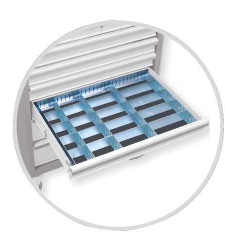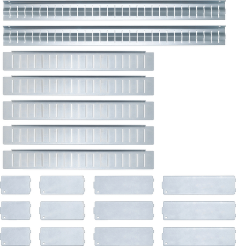 "longDescription": "<ul><li class=\"liste\">einsetzbar ausschließlich für Schubladen mit Innenmaß 565 x 395 mm</li><li class=\"liste\">Einteilungsmöglichkeit für diverse Utensilien</li><li class=\"liste\">passend für ECO<span class=\"plus\">line</span>, BASIC<span class=\"plus\">line</span>, MASTER<span class=\"plus\">line</span> und ULTIMATE<span class=\"plus\">line</span></li><li class=\"liste\">individuell verstellbar</li><li class=\"liste\">Blech</li></ul><br><br><strong>Enthaltene Teile:</strong><br>- 2 x Aufnahme für Teilsystem, geschlitzt, 565x50x1,5 mm<br>- 5 x Grobteiler, geschlitzt, 393x50x1,5 mm<br>- 4 x Feinteiler, ungeschlitzt, 188x50x1,5 mm<br>- 4 x Feinteiler, ungeschlitzt, 150x50x1,5 mm<br>- 4 x Feinteiler, ungeschlitzt, 112x50x1,5 mm<br>- 4 x Feinteiler, ungeschlitzt, 74x50x1,5 mm<br>",