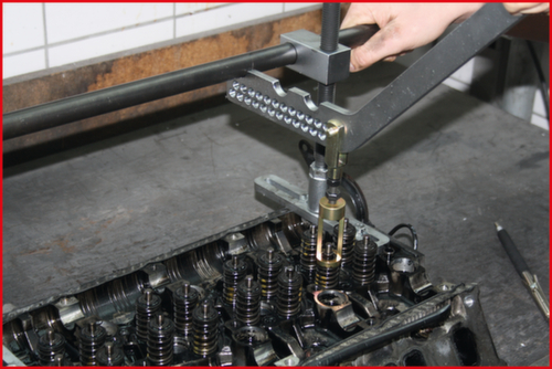"longDescription": "<ul><li class=\"liste\">zur Montage und Demontage von Ventilfedern</li><li class=\"liste\">bei auf- oder abgebautem Zylinderkopf</li><li class=\"liste\">universal einsetzbar durch verschiedene Montage- und Einstellmöglichkeiten</li><li class=\"liste\">hohe Kosten- und Zeitersparnis</li><li class=\"liste\">Ausbau vom Zylinderkopf entfällt bei Reparatur von Ventilschaftabdichtungen oder von Ventilfedern</li><li class=\"liste\">Flanschbefestigungen können quer oder parallel zur Nockenwellen-Achse aus dem Zylinderkopf befestigt werden</li><li class=\"liste\">optional erweiterbar mit spezifischen Druckstücken</li><li class=\"liste\">Spezial-Werkzeugstahl</li></ul><br /><strong>Anwendungsgebiete:</strong> alle Zylinderköpfe von 1 bis 12-Zylinder-Motoren, 2 bis 4 Ventiltechnik bei denen die Ventile in Reihe oder in V-Form angeordnet sind. <br /><br><br><strong>Enthaltene Teile:</strong><br>- 2 x Fuss für 160.0270<br>- 1 x Stange für 160.0270, 660 mm<br>- 2 x O-Ring 17x4mm<br>- 1 x Druckhebel für 160.0270<br>- 1 x Gewindestift M8x50<br>- 1 x Gabelkopf mit Federkappenbolzen M8x32<br>- 4 x Mutter, Außensechskant 19 mm, Innendurchmesser 6 mm<br>- 2 x Sk-Mutter M8 für 160.0270<br>- 1 x Druckstück Außen-Ø 34 mm<br>",