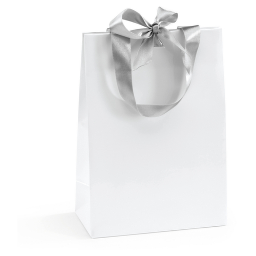 }Lackpapier-Tragetaschen mit Satinschleife 120 x 70 x 160 mm weiss