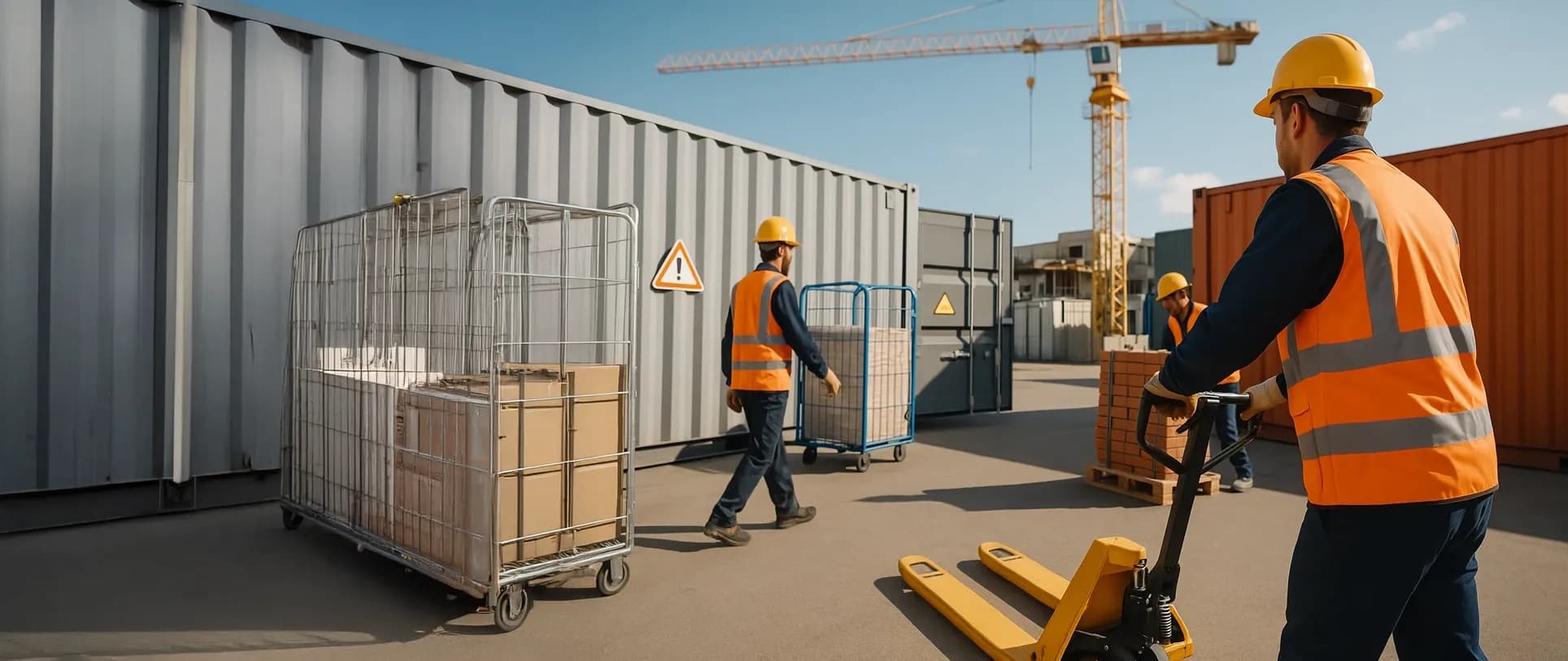 - Material bewegen: Hubwagen und Palettenhubwagen ermöglichen schnellen und sicheren Transport schwerer Lasten auf der Baustelle