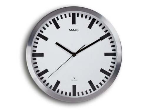 "metaDescription": "MAUL Funk-Wanduhr, mit Balkenziffern, Ø 300 mm - Funk, Balkenziffern, Ziffernblatt weiß, Ø 300mm, Gehäuse silber, Batteriebetrieb",