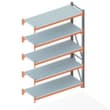 Die wichtigsten Maße des META Weitspannregals Multipal S auf einen Blick:5 Ebene(n) mit Stahlpaneele. Fachhöhen je nach Einsatzzweck und Ihrem Bedarf im Raster von 50 mm verstellbar. Nutzung einseitig - zur Aufstellung an der Wand konzipiert. Konstruktion aus Stahl. Ständer mit korrosionsschützender Zinkbeschichtung. Ebenen mit korrosionsschützender Zinkbeschichtung. Traversen mit schlag- und kratzfester Pulverbeschichtung in RAL2001 Rotorange.