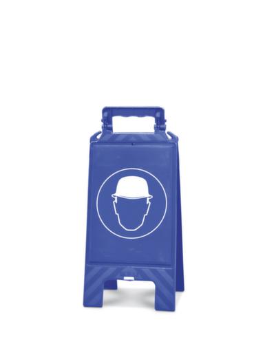 "description": "Kopfschutz tragen, Bodenaufsteller, Kunststoff, blau, HxBxT 600x275x270mm",