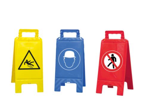 "longDescription": "<h2>Warnaufsteller</h2><strong>Symbole beidseitig</strong><br><ul><li><strong>Zur schnellen und mobilen Kennzeichnung</strong> von Gefahrenbereichen</li><li><strong>Robust und langlebig</strong> - aus Kunststoff</li><li><strong>Sicher transportiert und gelagert</strong> - zusammengeklappt mit Clip verschließbar</li><li><strong>Kein ungewolltes Zusammenklappen</strong> - im geöffneten Zustand arretierbar</li><li><strong>Zum Absperren von kompletten Bereichen</strong> mit seitlichen Aufnahmen für Ketten aus Kunststoff</li></ul><br><strong>Sie haben die Wahl:</strong><br><ul><li><strong>Gebotsschilder</strong> zeigen Ihren Mitarbeitern in gefährdeten Arbeitsbereichen an, welche Schutzausrüstungen zu tragen sind</li><li><strong>Warnschilder</strong> weisen Personen auf ein mögliches Gefahrenpotenzial hin</li><li><strong>Verbotsschilder</strong> zeigen Ihren Kunden, Besuchern und Mitarbeitern einfach und verständlich welches Verhalten zu unterlassen ist, damit Unfälle oder Schäden vermieden werden</li></ul>",