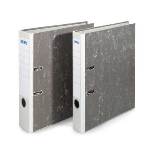 "metaDescription": "Ordner grau marmoriert RAJA - Rückenbreite 8cm",