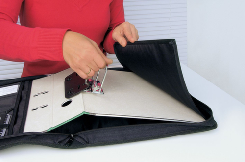 "longDescription": "<h2>Ordnertasche</h2><ul><li>Aus Polyester</li><li>Für A4-Ordner bis 80 mm Rückenbreite </li><li>Platz für Visitenkarten, Stifte, Taschenrechner usw.</li><li>Ordner lässt sich leicht in das Reißverschlussfach einsetzen</li><li>Tasche mit Reißverschluss verschließbar </li></ul><br><h3>Ausstattung:</h3><ul><li>2 versenkbare Tragegriffe </li><li>2 A4-Fächer außen</li></ul>",
