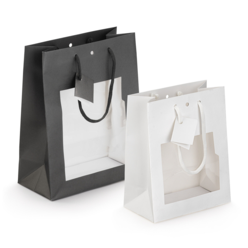 "metaTitle": "Papiertragetaschen mit Sichtfenster schwarz 180 x 190 x 80 mm - Taschen & Tüten",