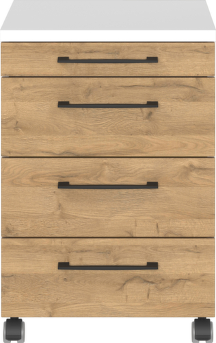 "title": "Rollcontainer GW-PROFI 2.0 mit Materialauszug, 3 Schublade(n), weiß/Grandson-Eiche",