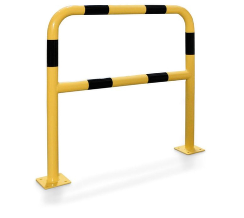 "longDescription": "<h2>Schutzbügel</h2><strong>doppelter Anfahrschutz durch Knieholm</strong><br><ul><li><strong>Robust und langlebig</strong> - aus Stahl</li><li><strong>Einfache Montage</strong> - Bodenplatte mit vorgebohrten Löchern zum Aufdübeln</li></ul><br><strong>Sie haben die Wahl:</strong><br><ul><li><strong>Starke Signalwirkung oder besonderer Korrosionsschutz</strong> - Bügel wahlweise in gelb, gelb/schwarz Beschichtet oder galvanisiert</li></ul>",