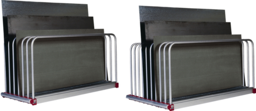 "longDescription": "<h2>Tafelregal</h2><strong>für die erleichterte Lagerung von großformatigen Tafeln</strong><br><ul><li><strong>Leichte Einlagerung</strong> durch Leichtlaufrolle an der Bodenstirnseite</li><li><strong>Robust und kratzfest</strong> - Rahmen aus Rechteckrohr mit Pulverbeschichtung</li><li><strong>Korrosionsbeständig</strong> - Boden, Führungen und Bügel aus verzinktem Stahl</li></ul><br><strong>Sie haben die Wahl:</strong><br><ul><li><strong>Noch mehr Lagerplatz</strong> - wahlweise mit 9 Fächern für großformatige Tafeln</li></ul><br><br><strong>Nicht das gefunden, was Sie benötigen?</strong><br><br>Wir bieten Ihnen gerne bedarfsgerechte Lösungen an. Für eine individuelle Planung sprechen Sie uns bitte an. Wir beraten Sie gerne persönlich am Telefon oder auch direkt vor Ort durch unseren Außendienst.<br>",