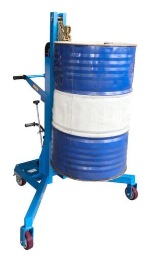 Mithilfe des Fasslifters lassen sich Fässer direkt vom Boden aus aufnehmen. Alternativ können Europaletten bis zur Hälfte überfahren werden. Traglast 450 kg. Für Stahlfässer.