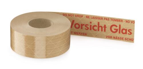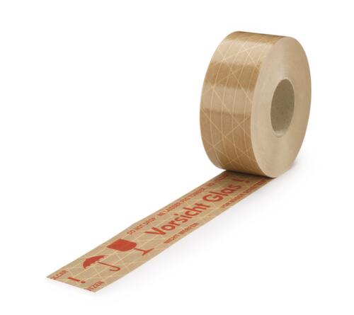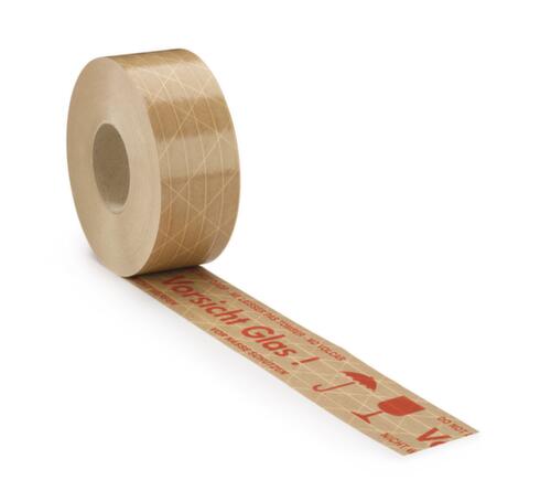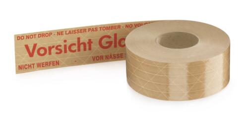"metaDescription": "Warn-Nassklebeband - \"Vorsicht Glas\", DE/EN/FR/ES, LxB 150m x 50mm, Band braun, Aufdruck rot",